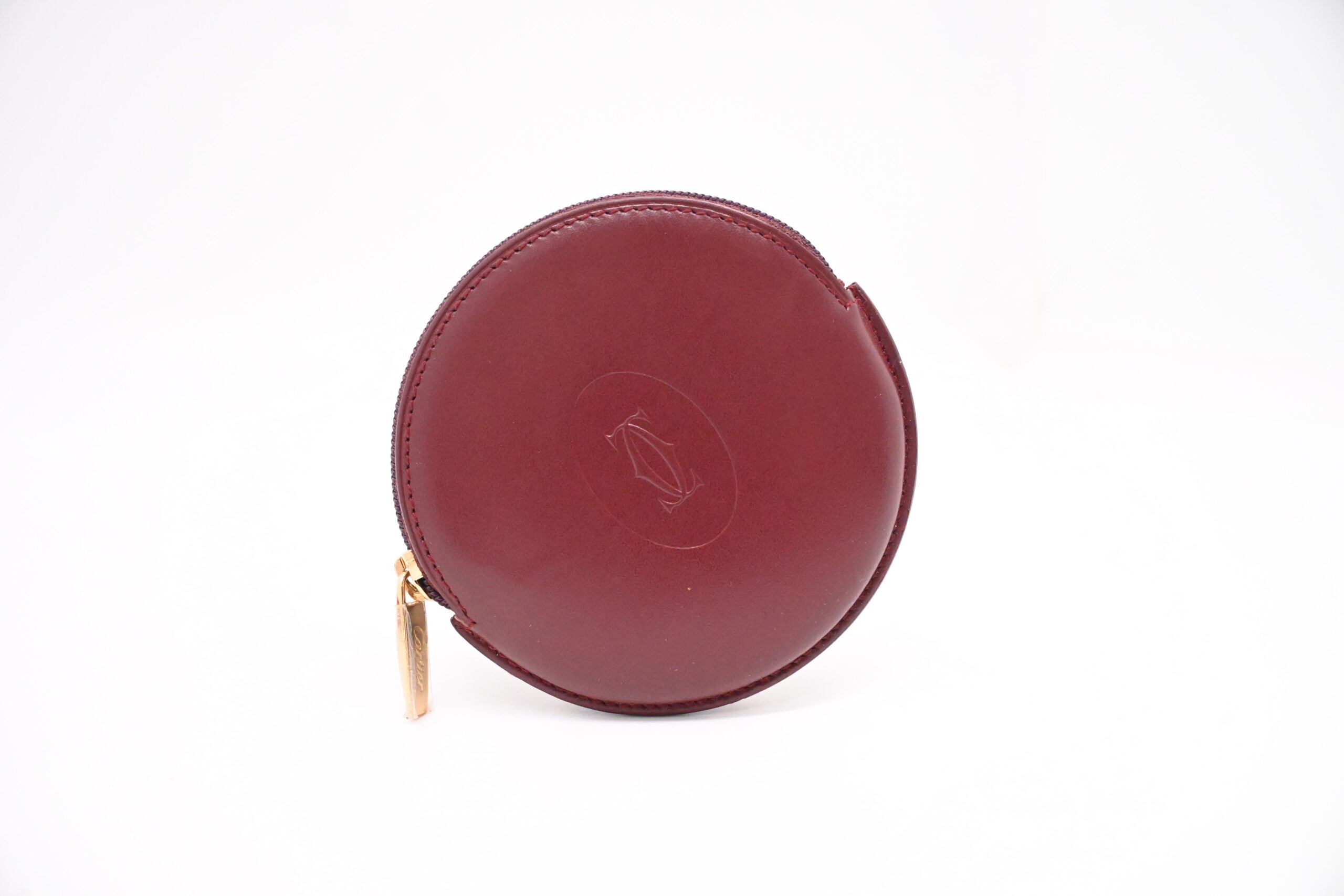Cartier Round Coin Case in Burgundy Leather