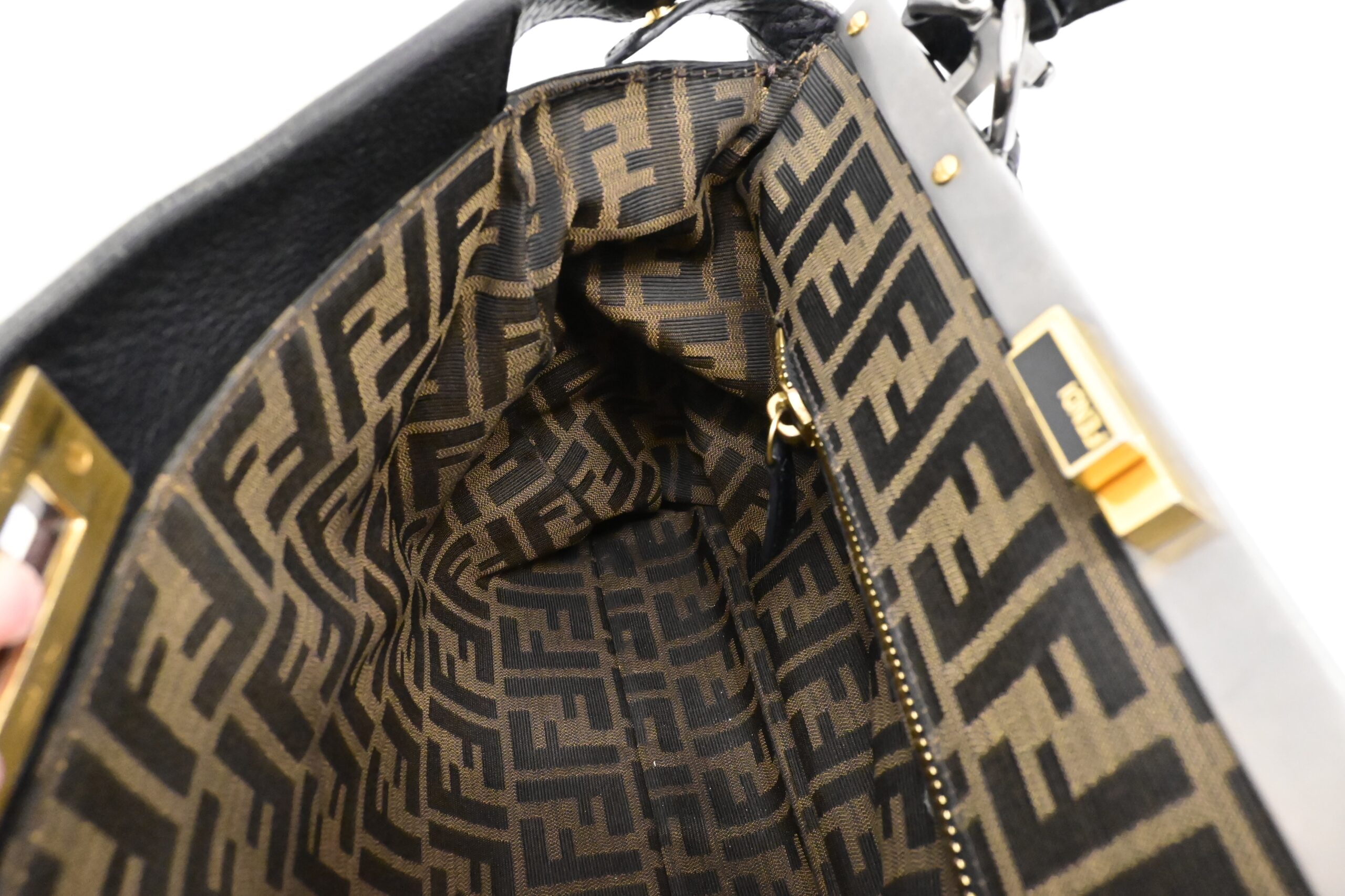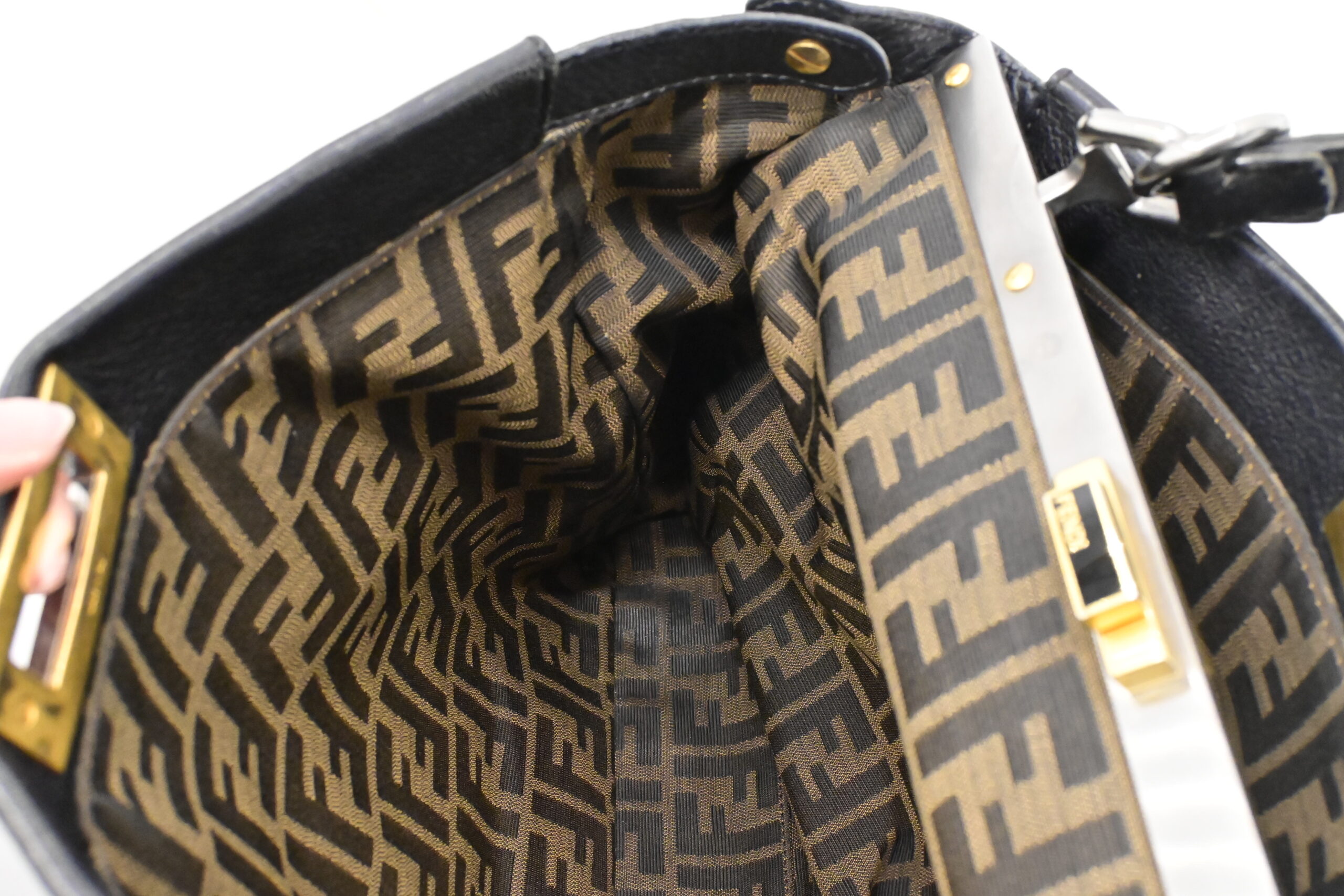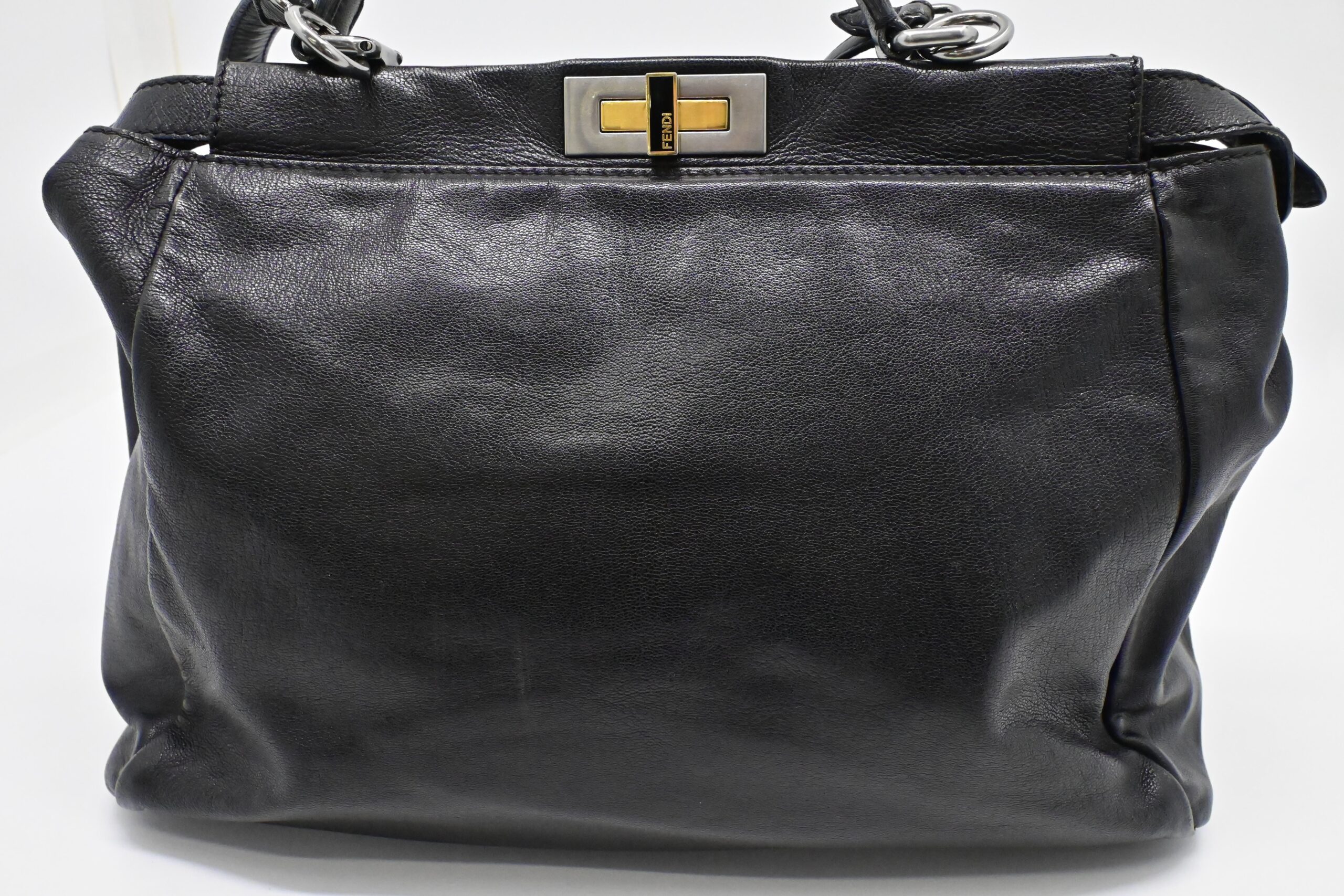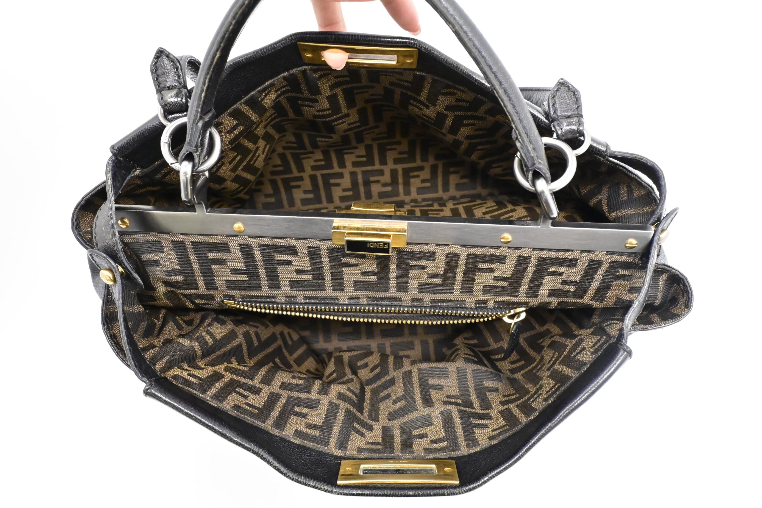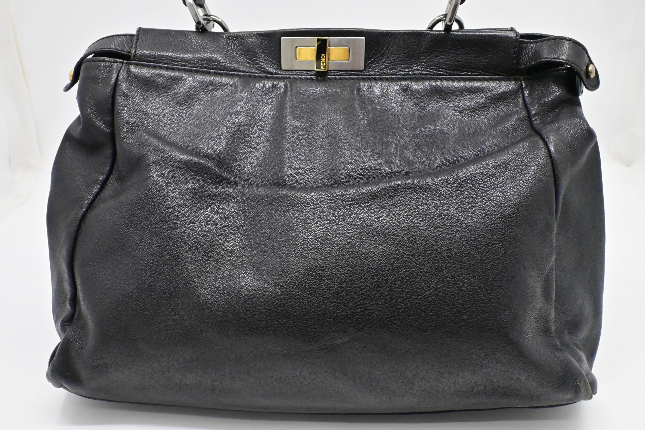 – Hardware: Brushed silver and gold, light surface wear, working closures, smooth zipper