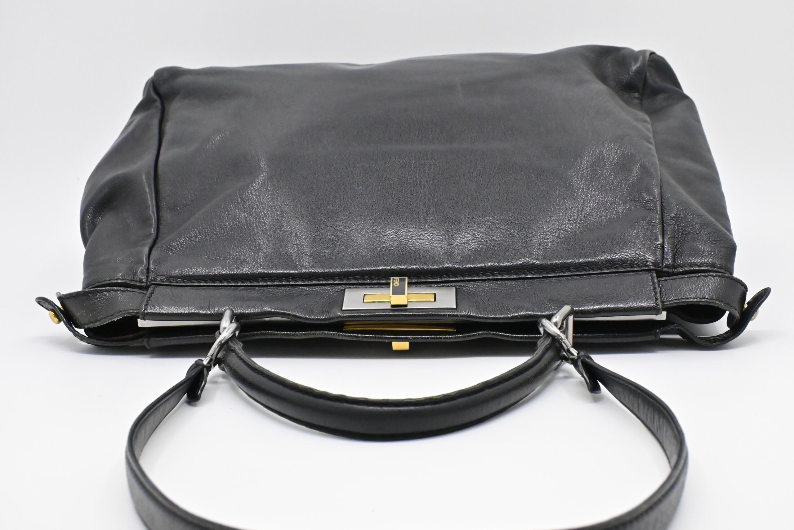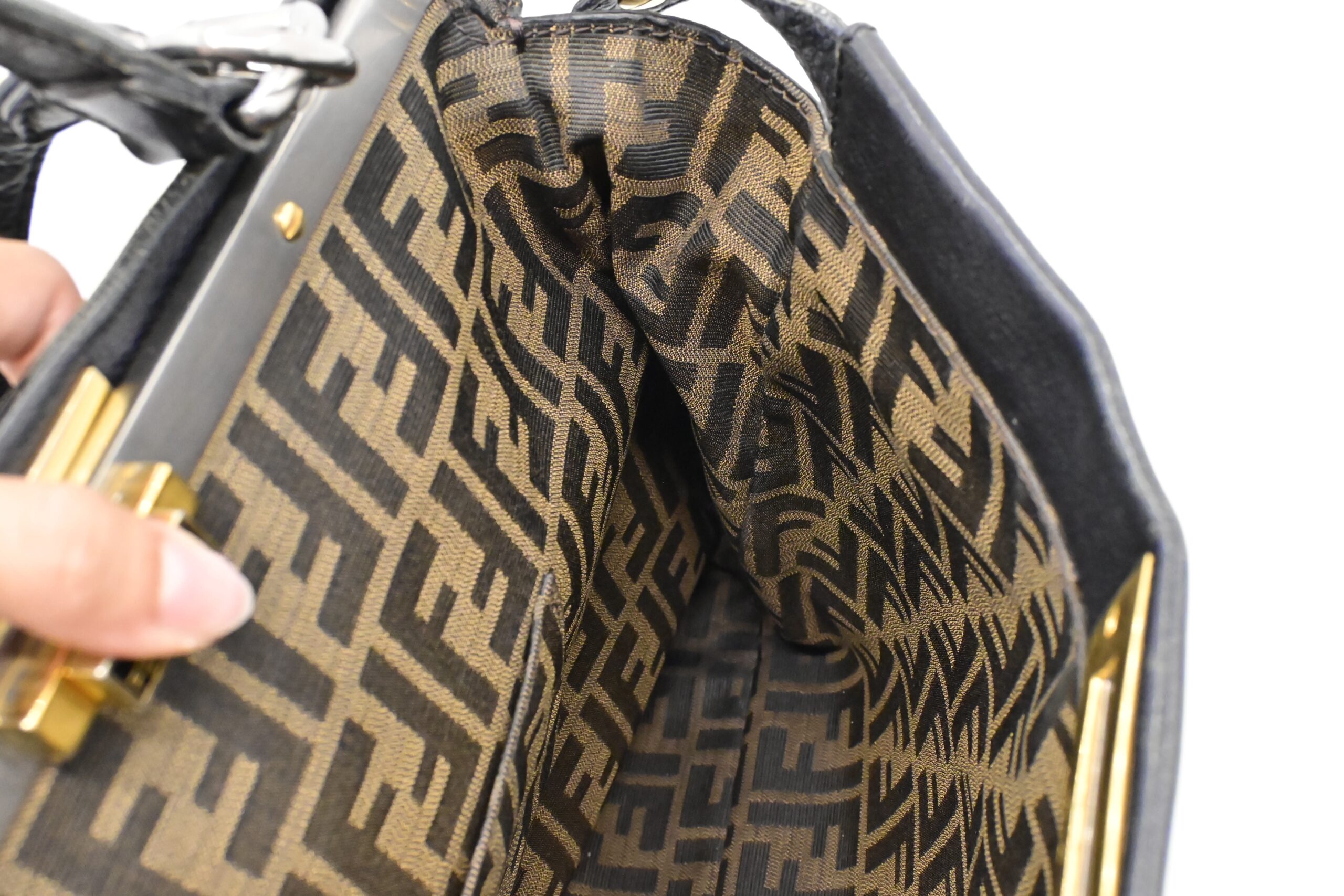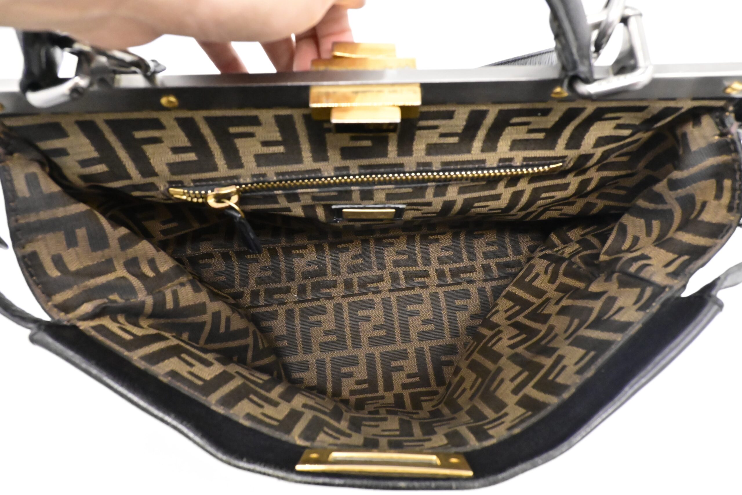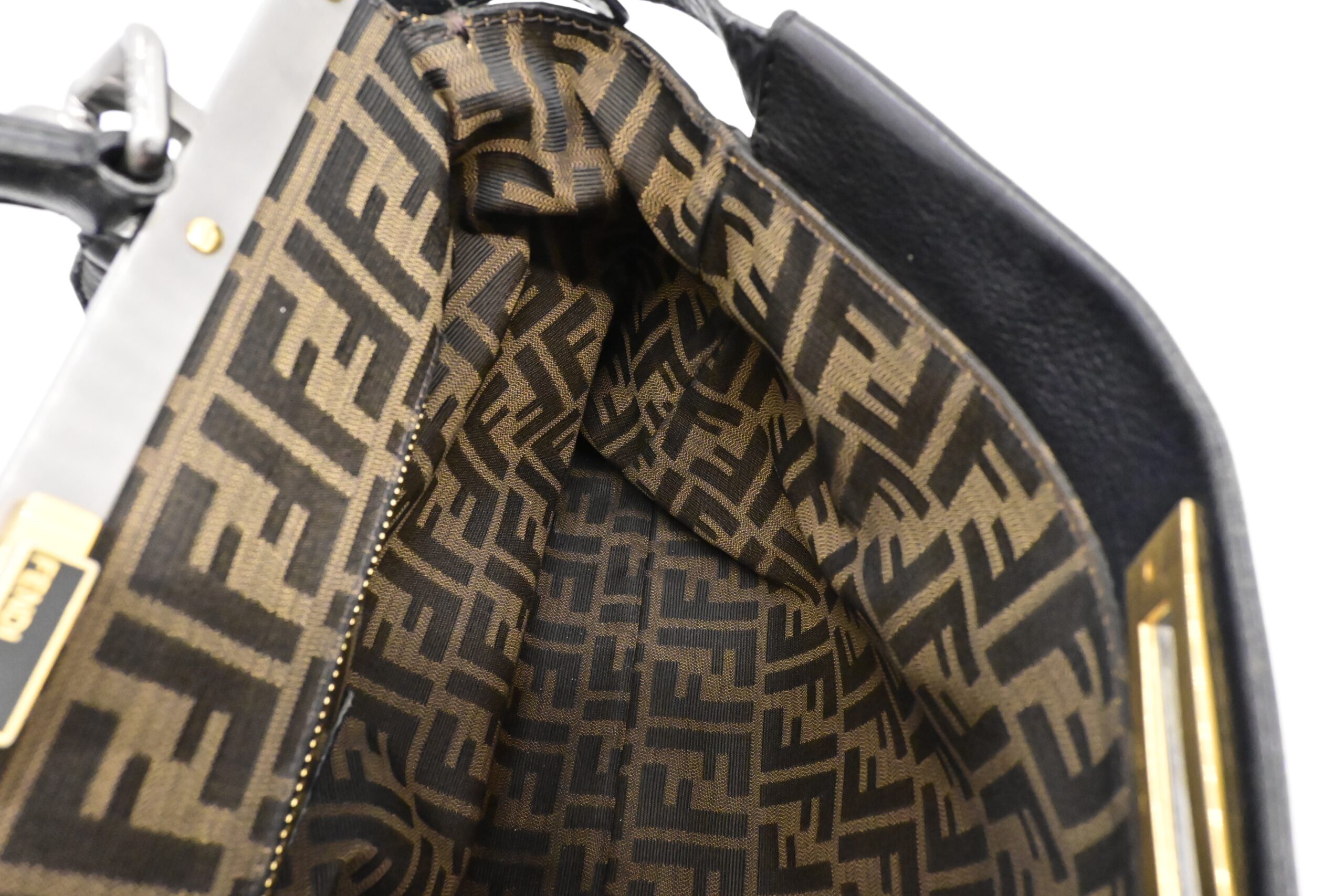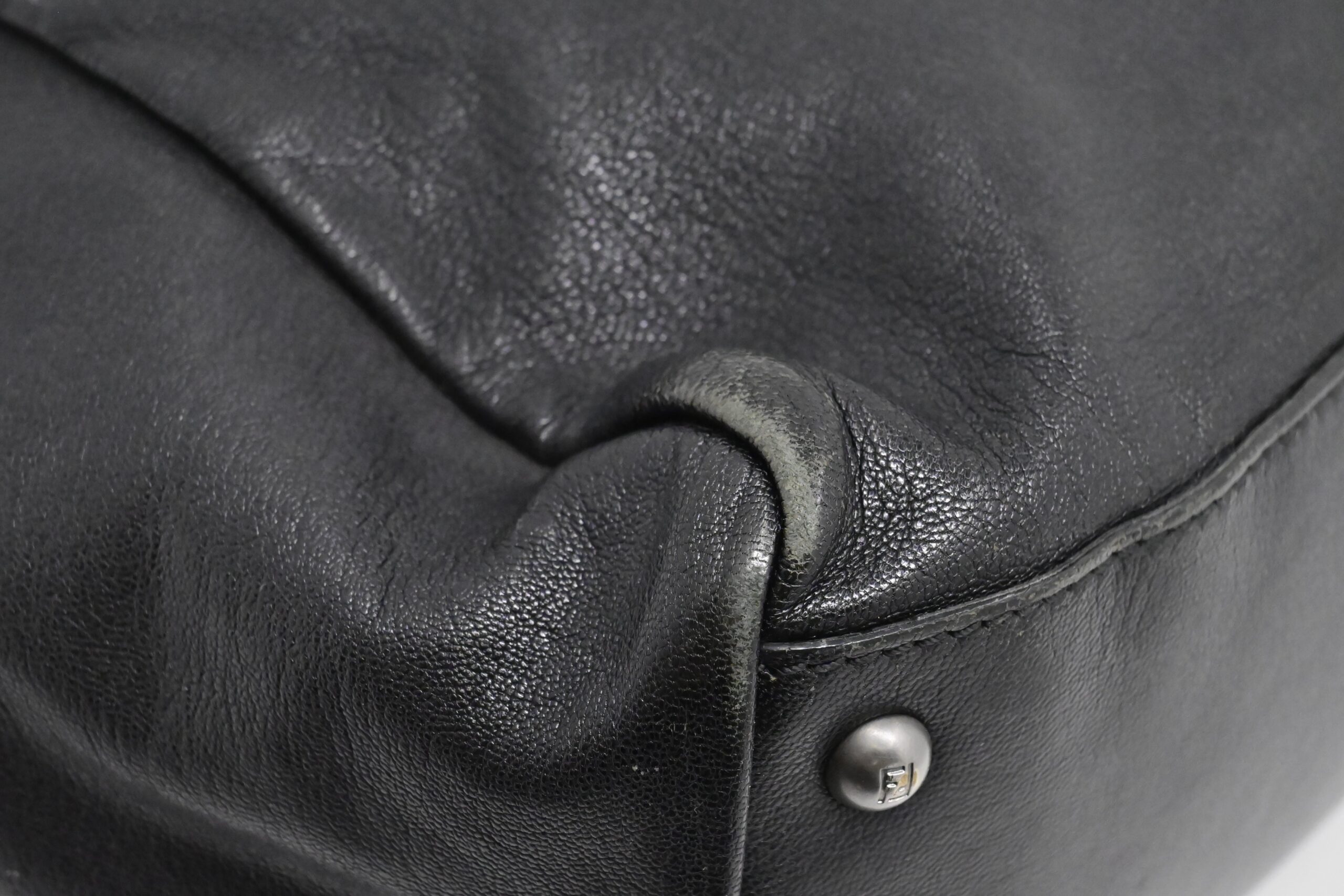 – Hardware: Brushed silver and gold, light surface wear, working closures, smooth zipper