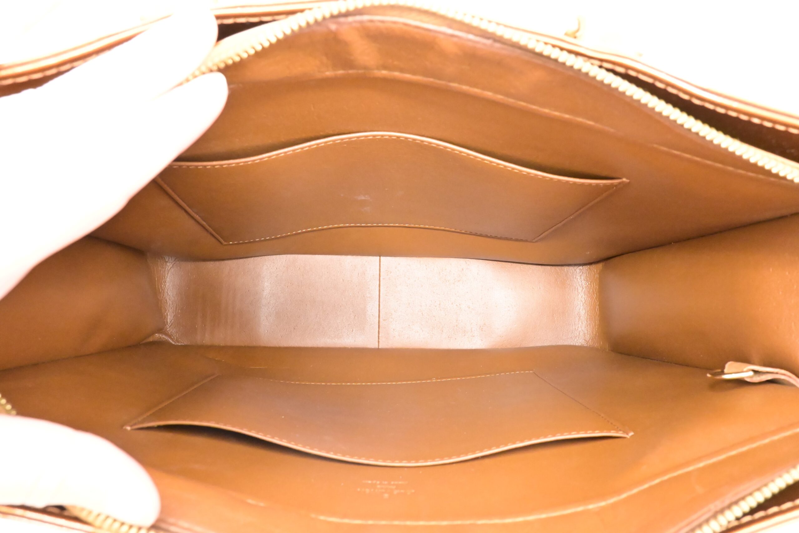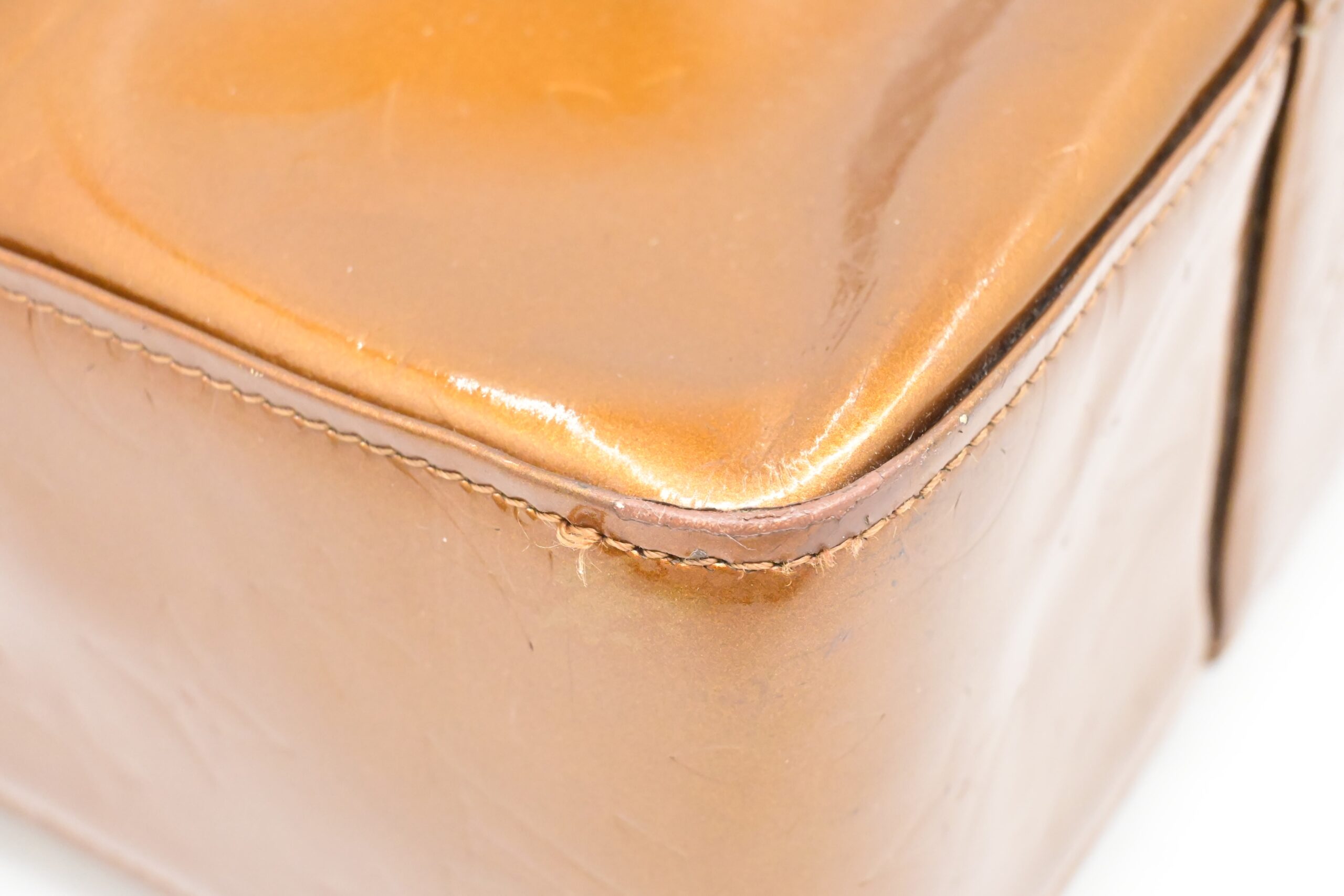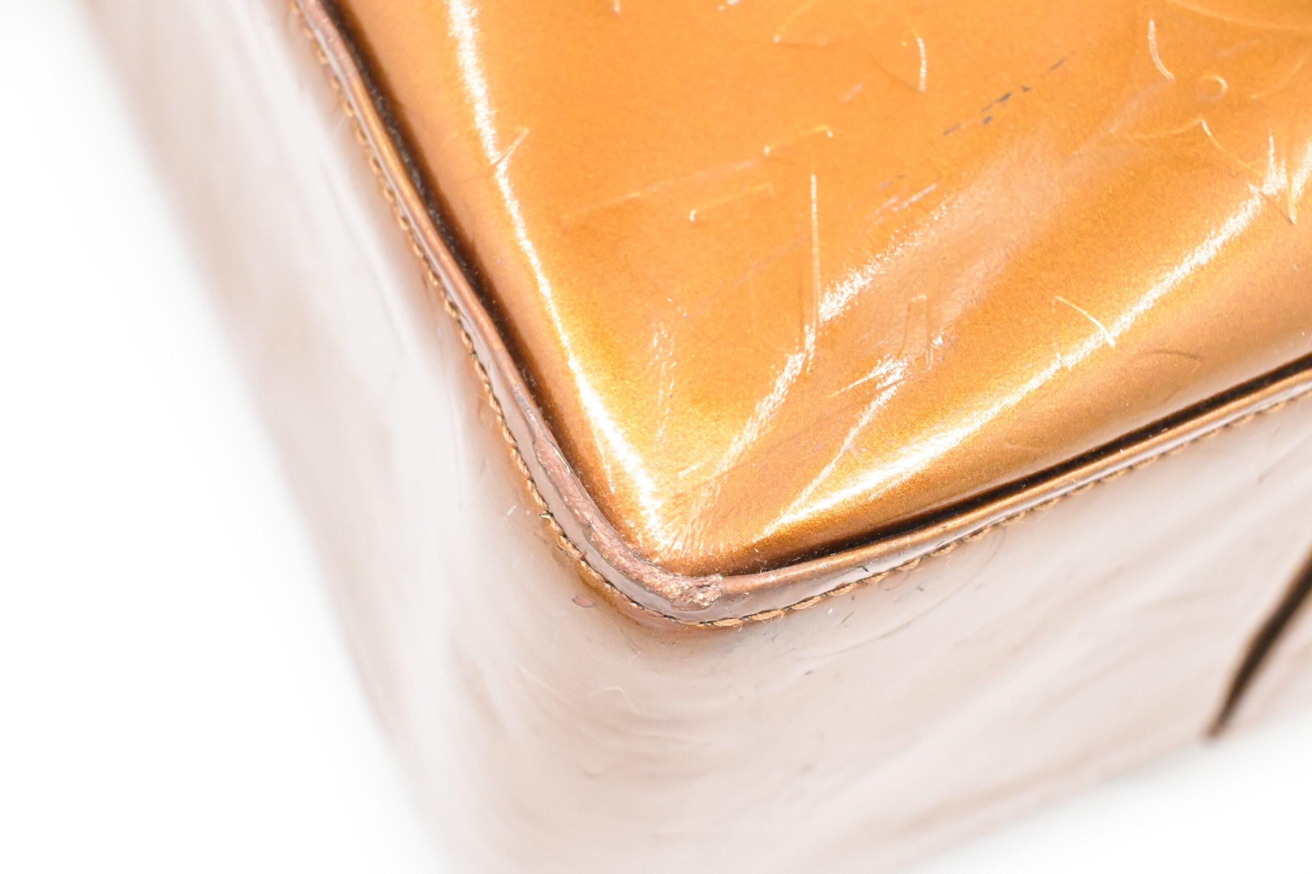– Hardware: Shiny gold with light surface rub, smooth zipper