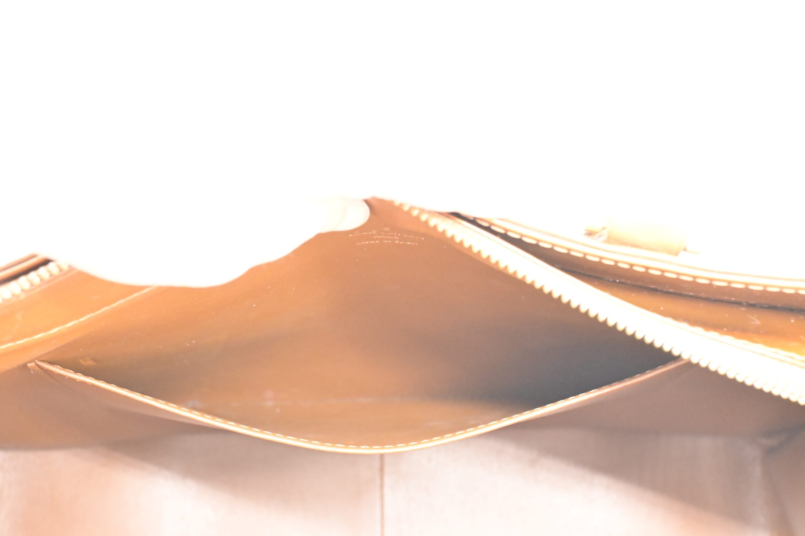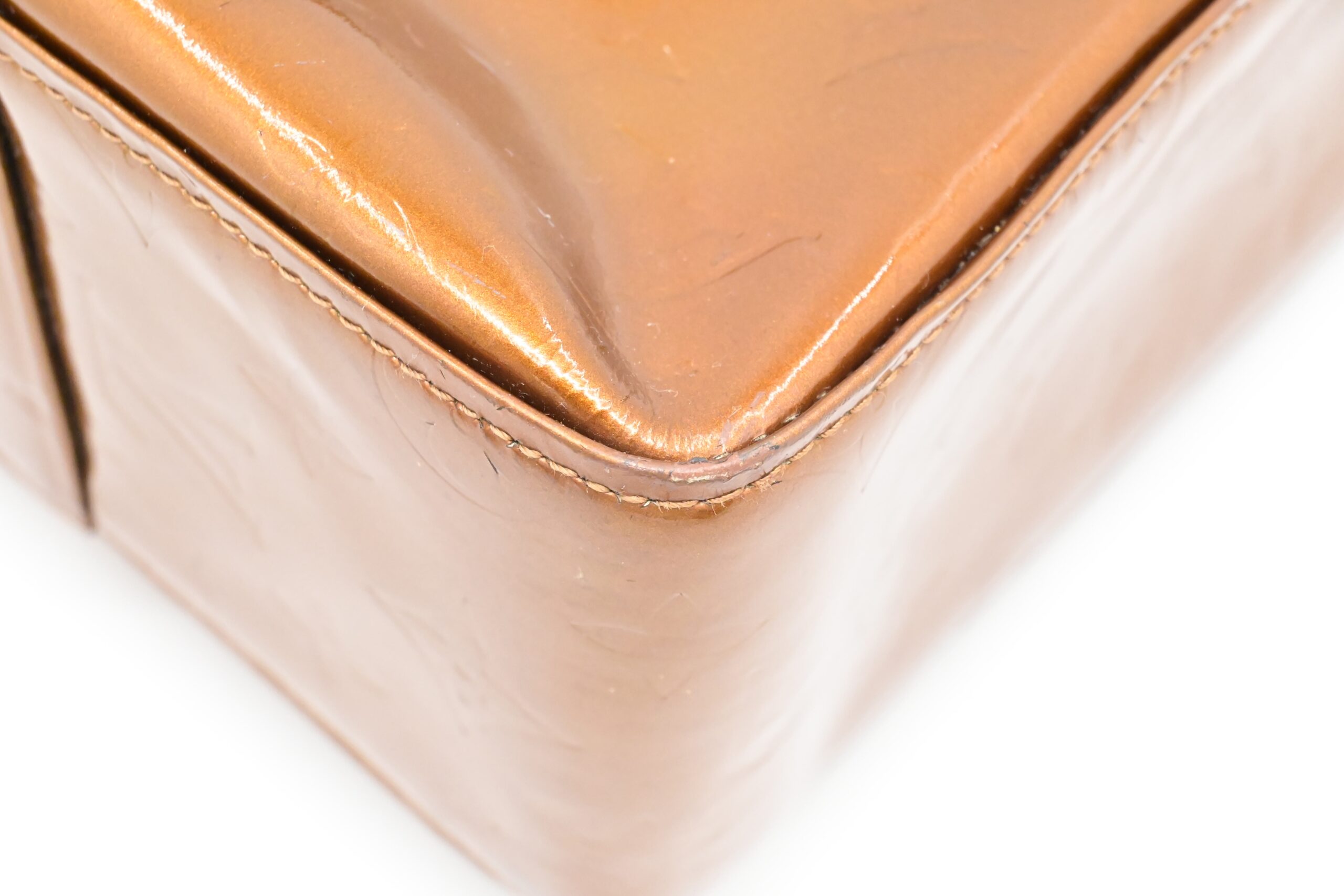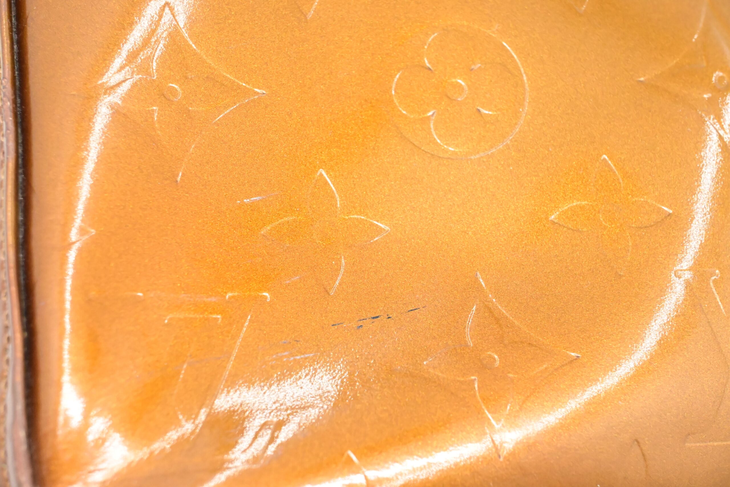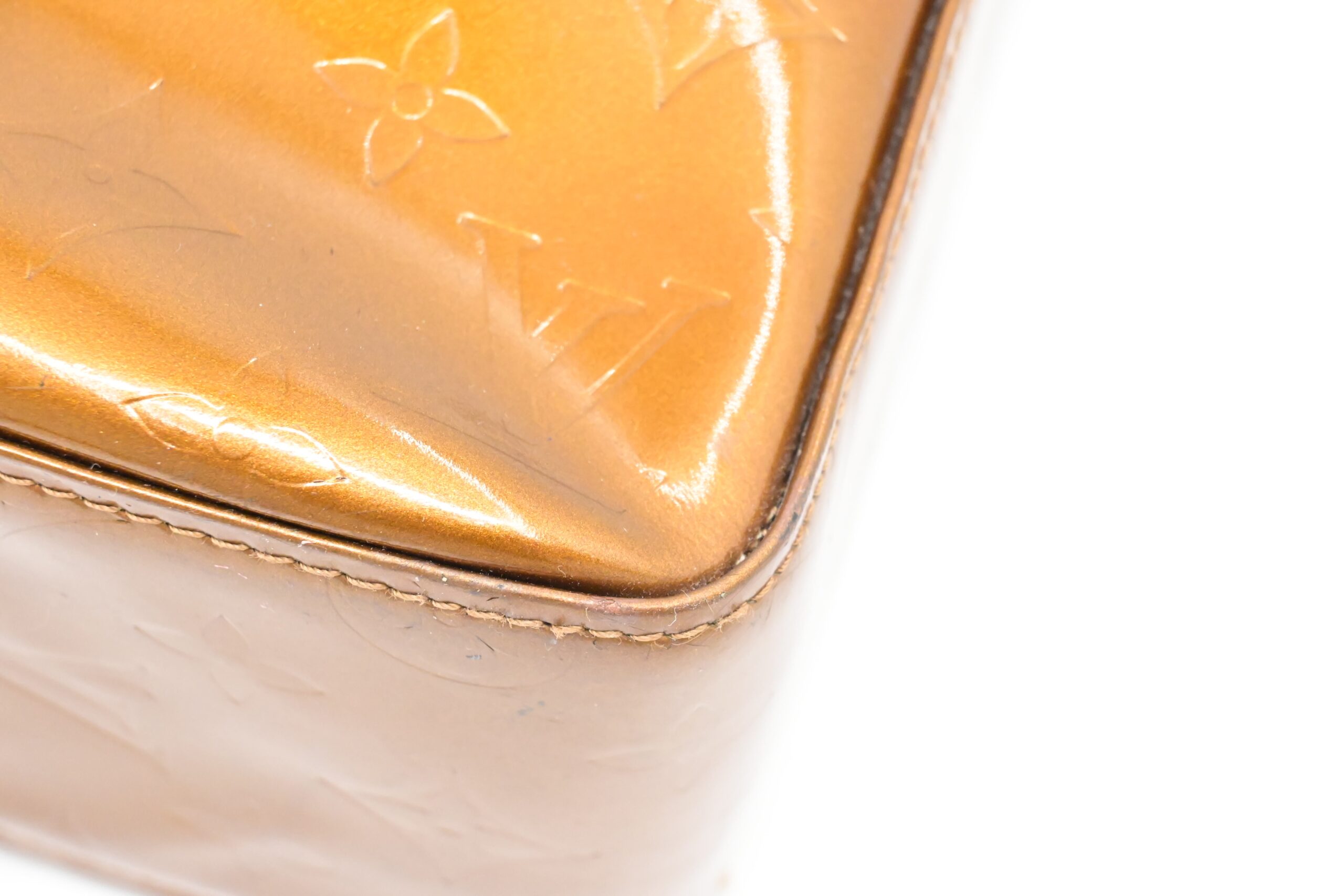 – Hardware: Shiny gold with light surface rub, smooth zipper