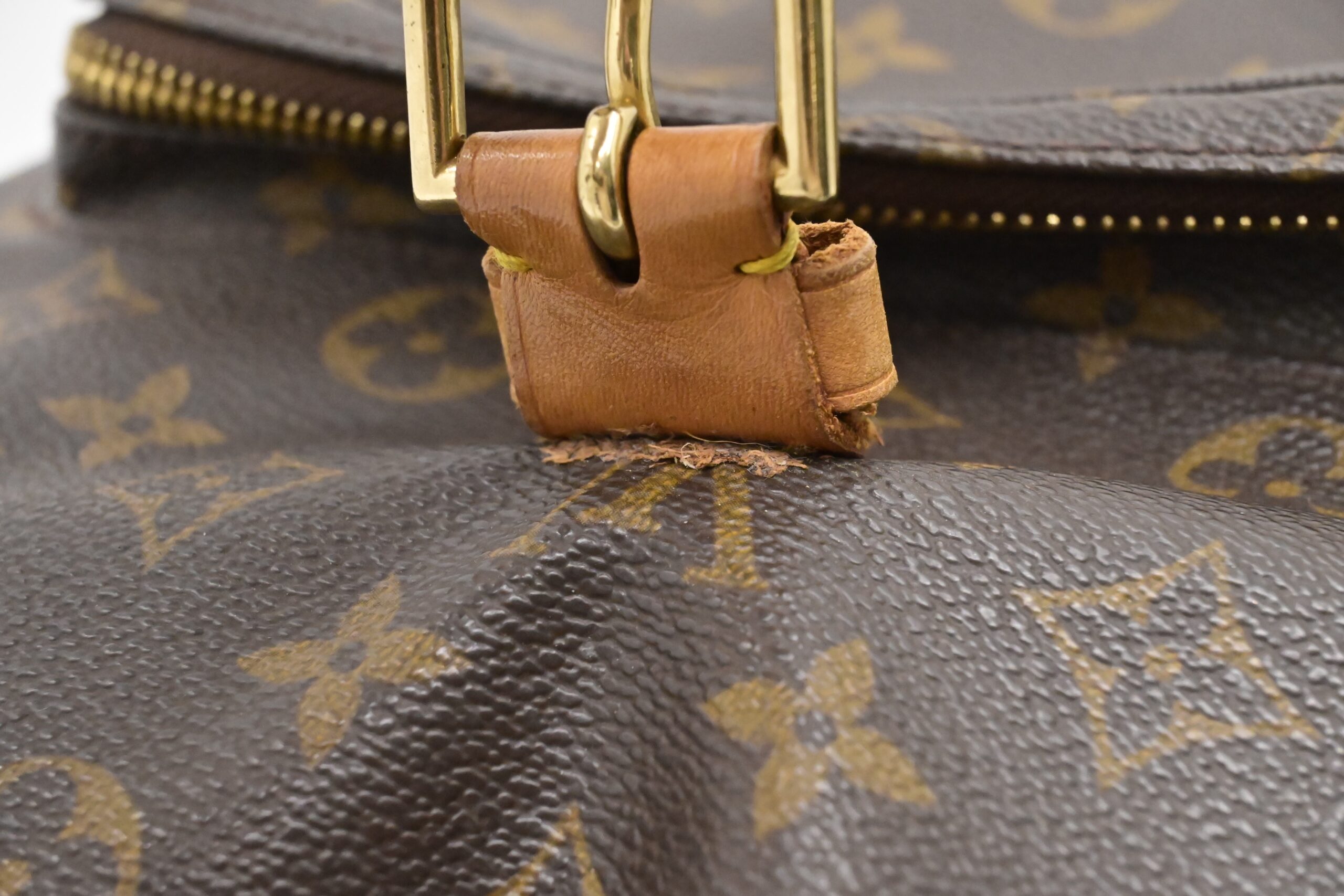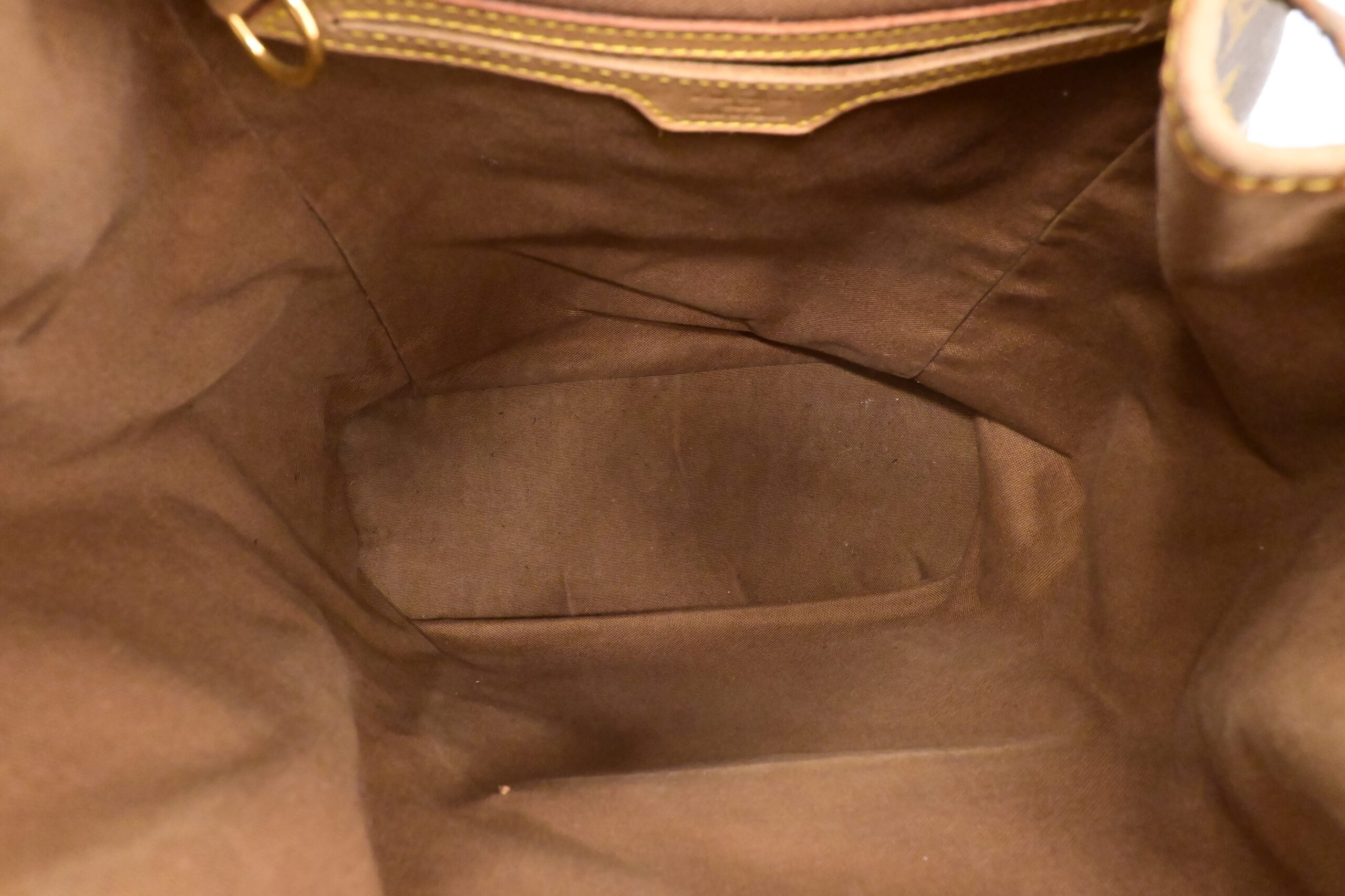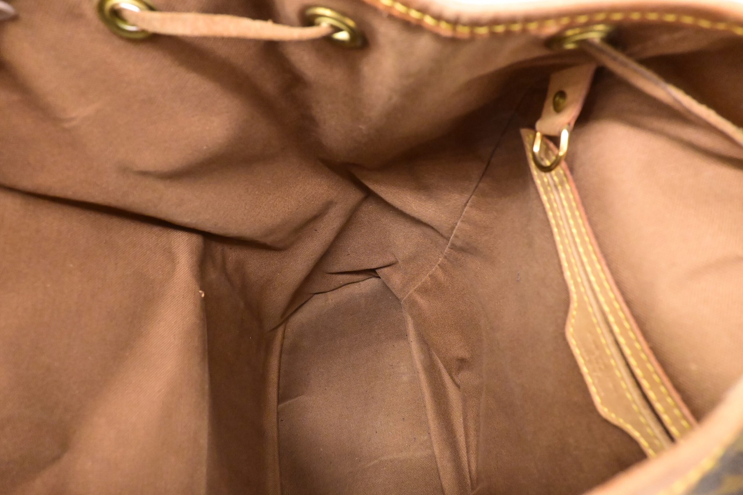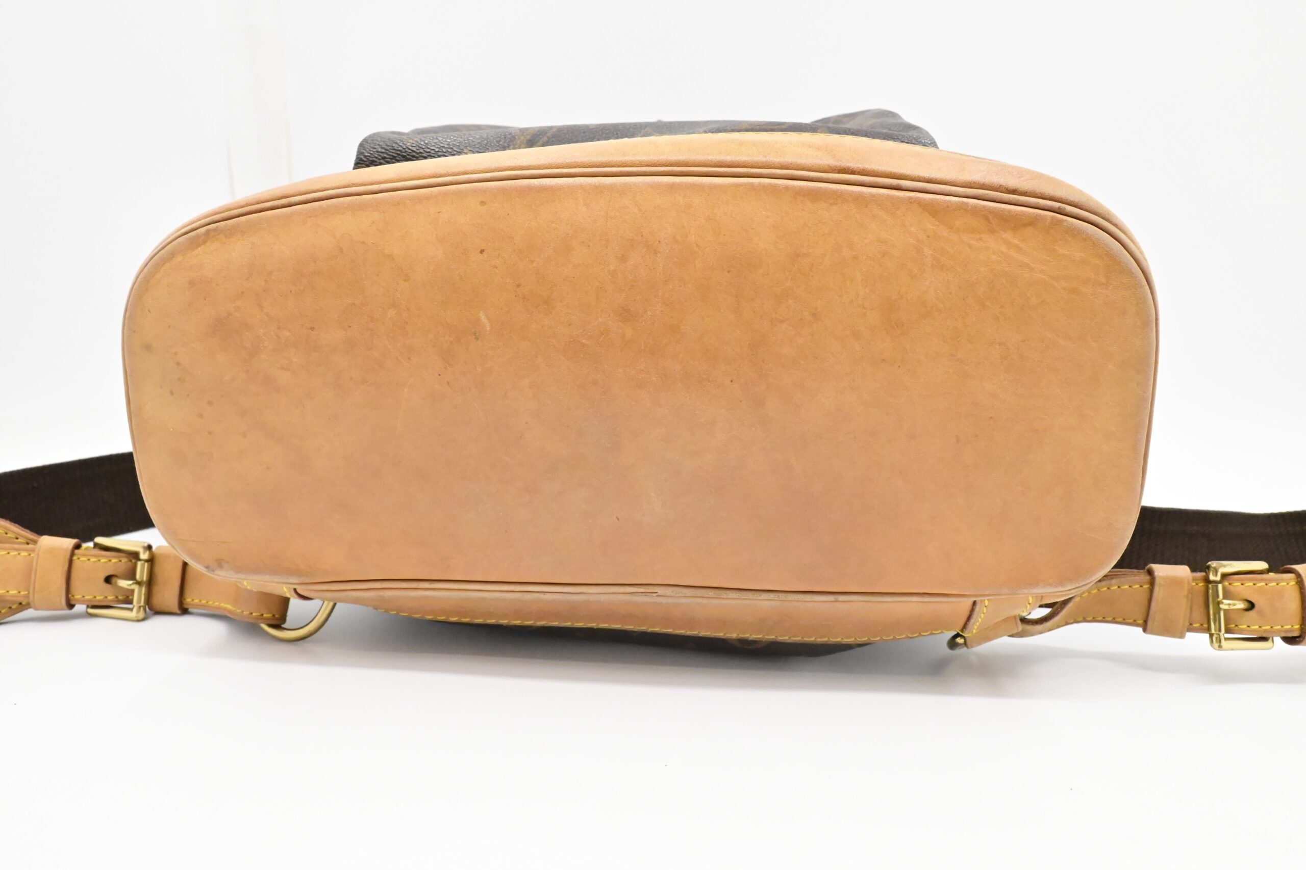 – Leather parts/Vachetta: Very good, some faint marks, light rub, slight water marks. Some wear on drawstring