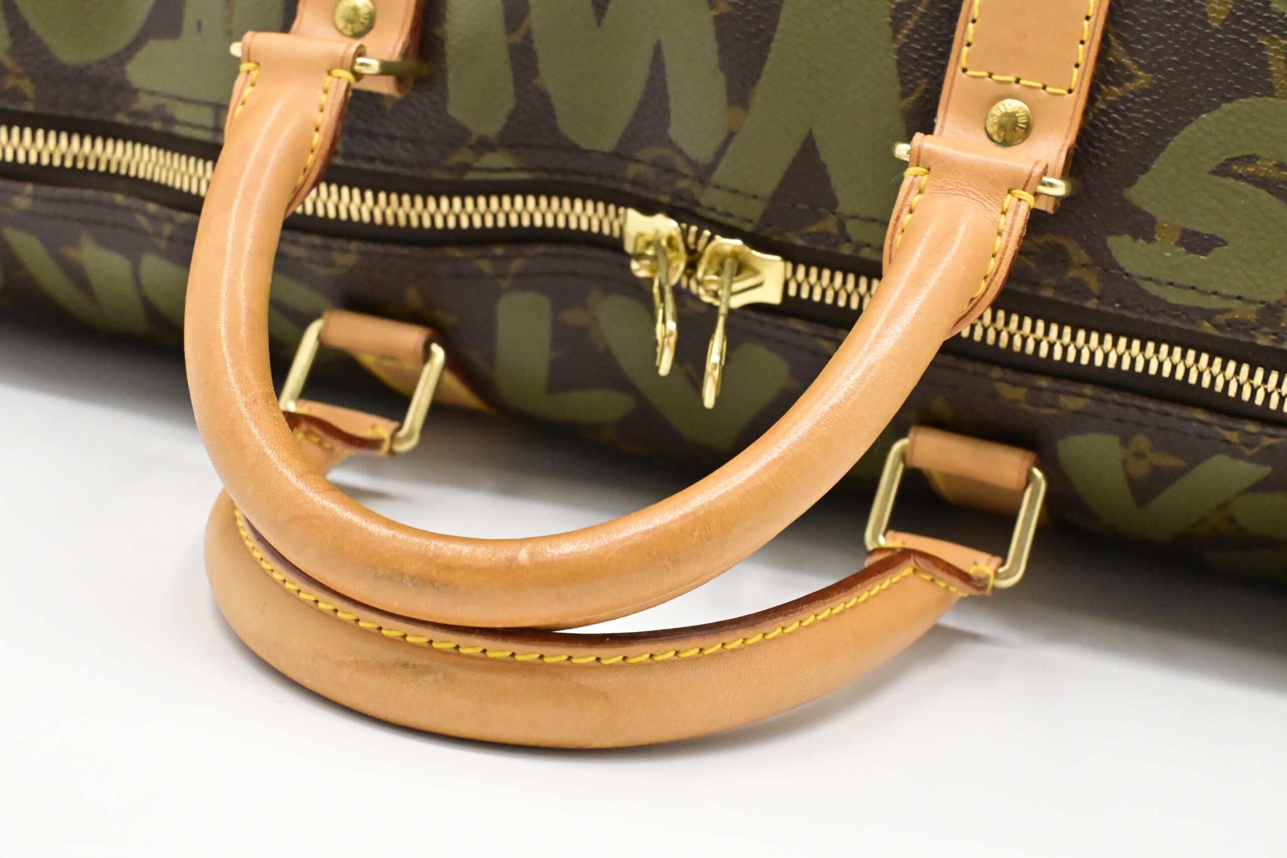 – Leather parts/Vachetta: Very good, some faint watermarks, even pattina