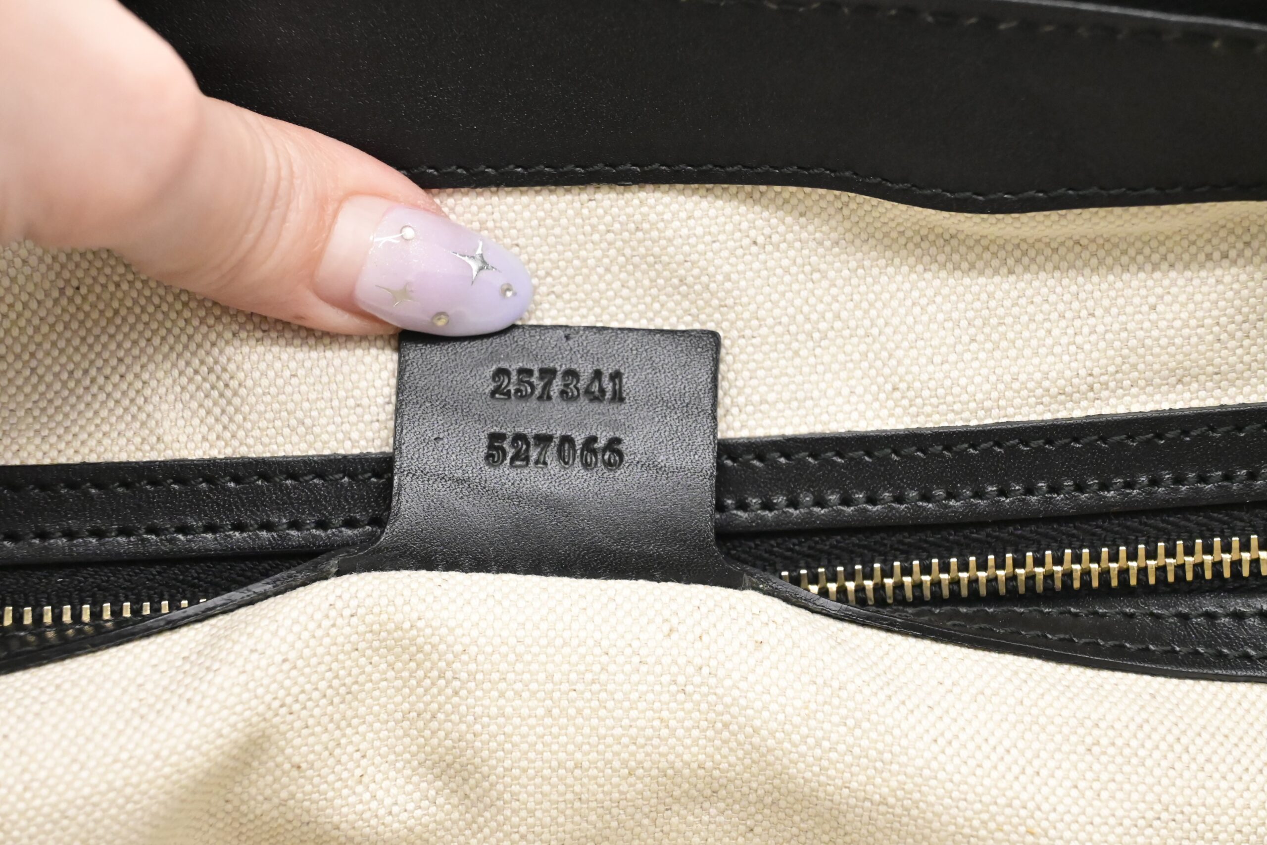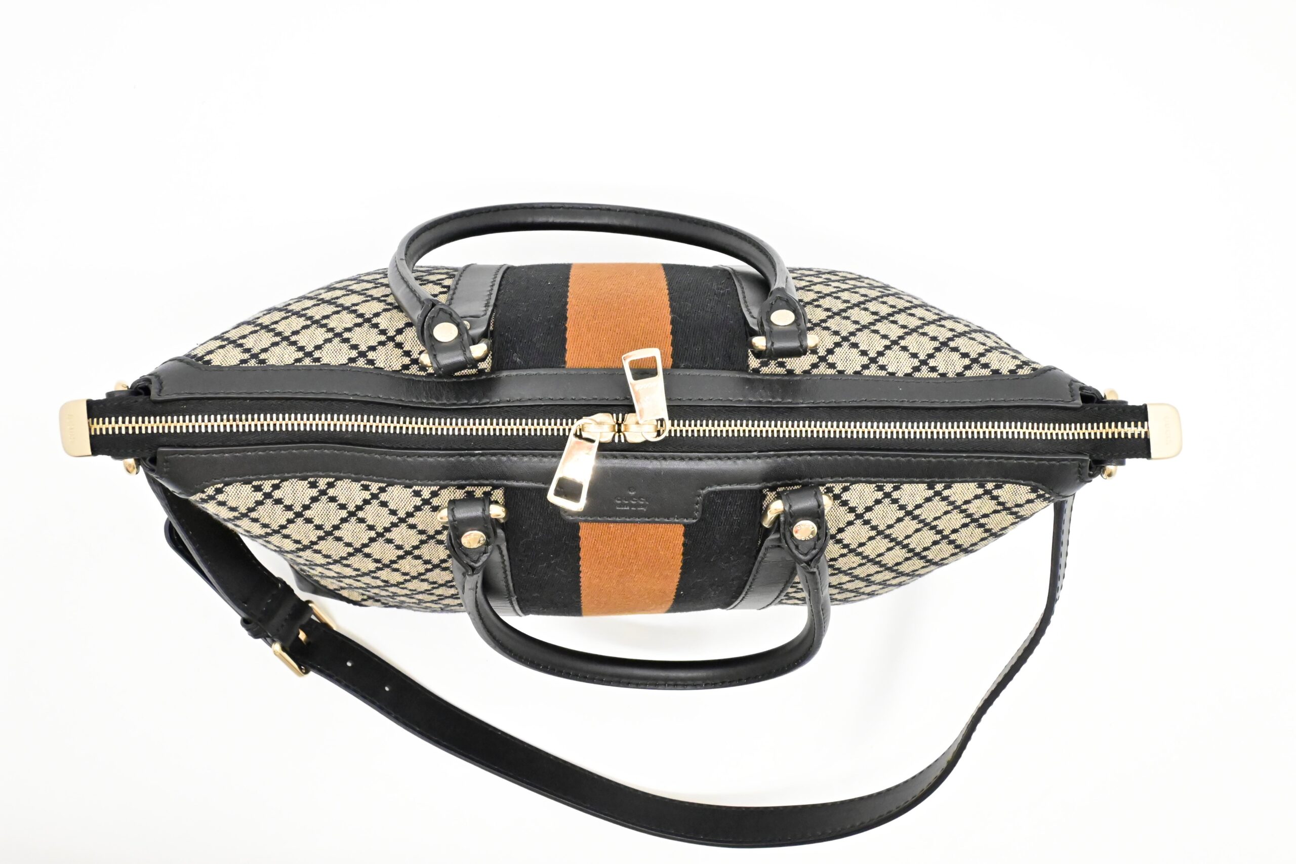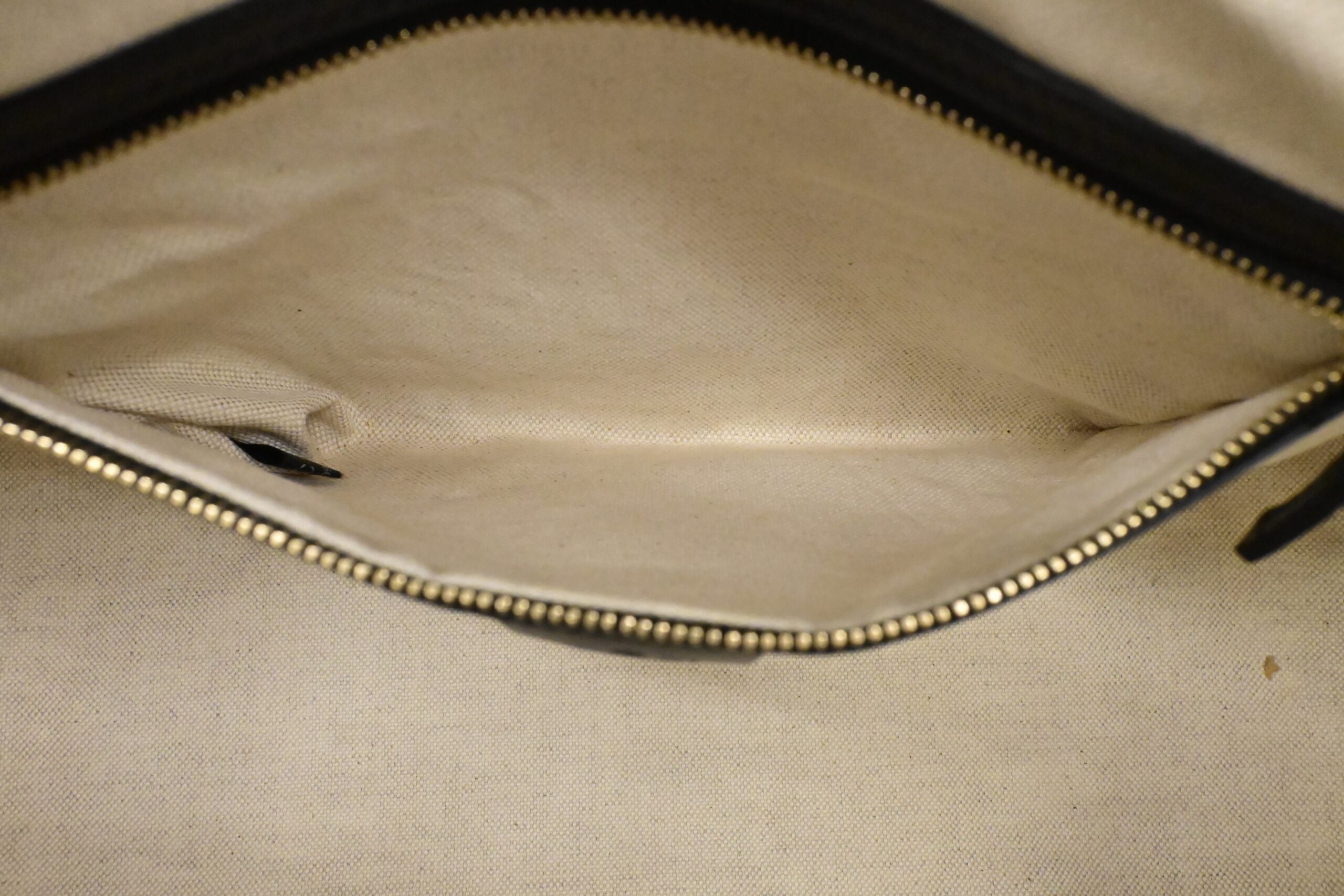 – Hardware: Shiny champagne gold tone, smooth zippers