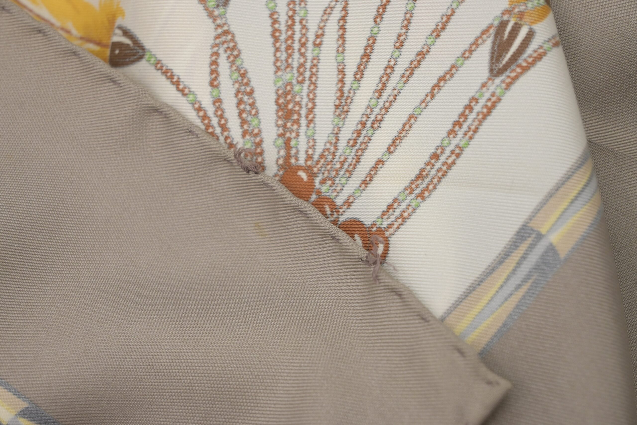 – Fabric/Material: 100% silk, few faint scuffs, spots of color change