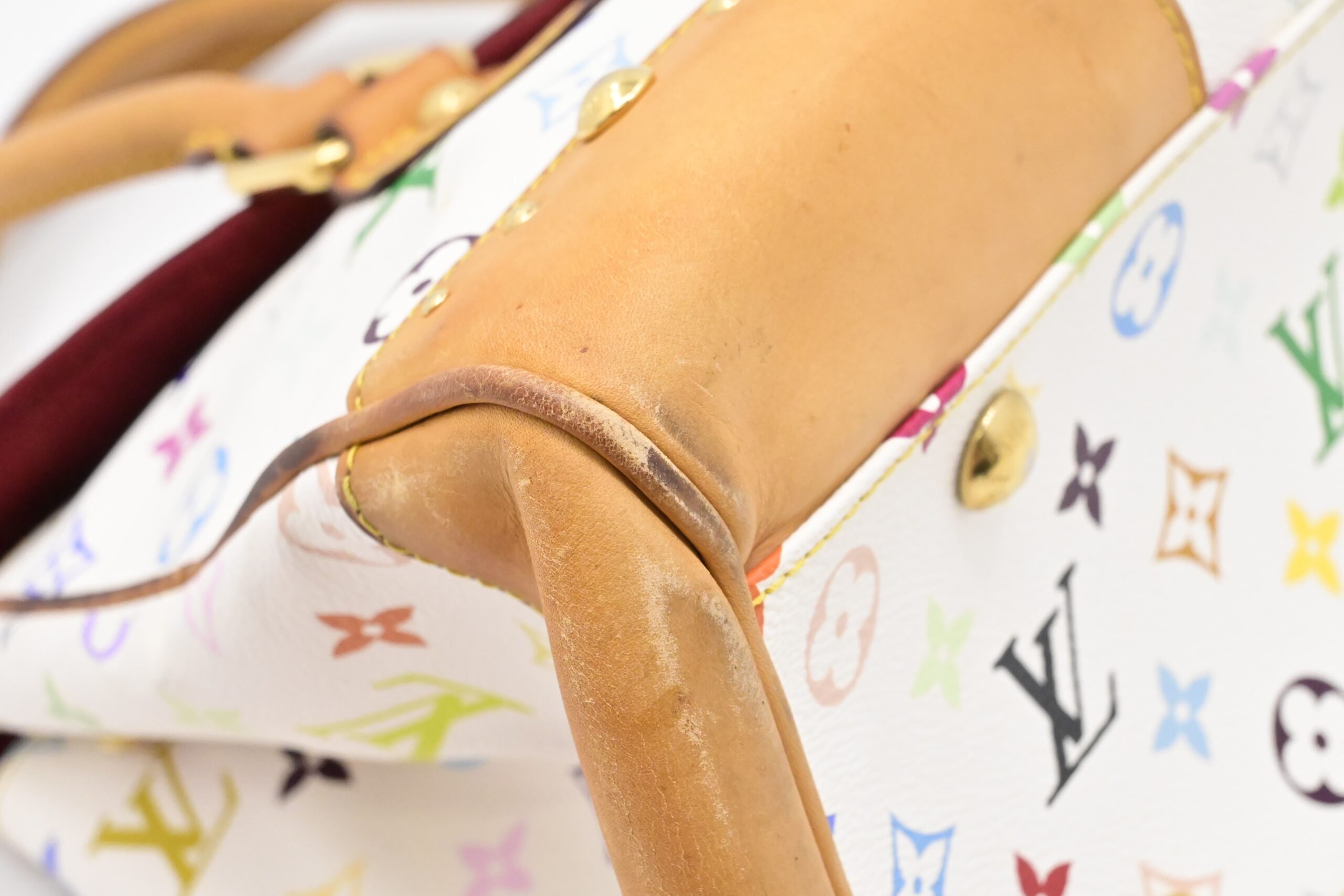 – Leather parts/Vachetta: Very good, light rub and water spots