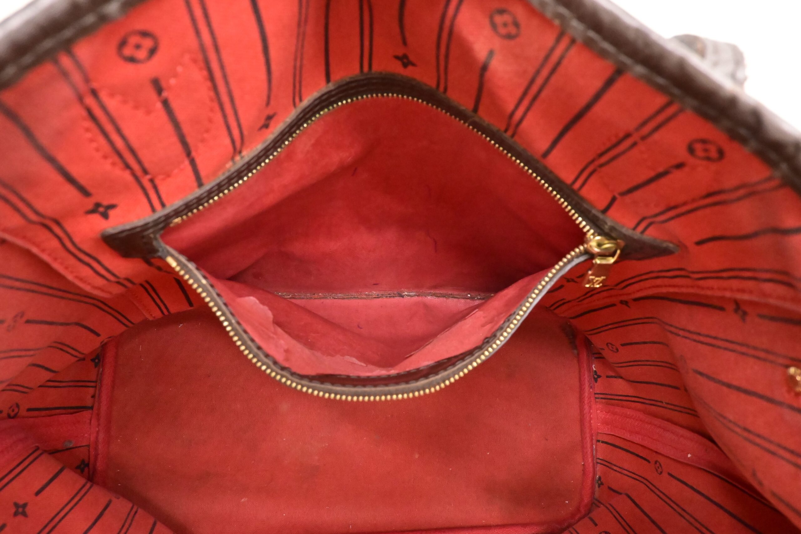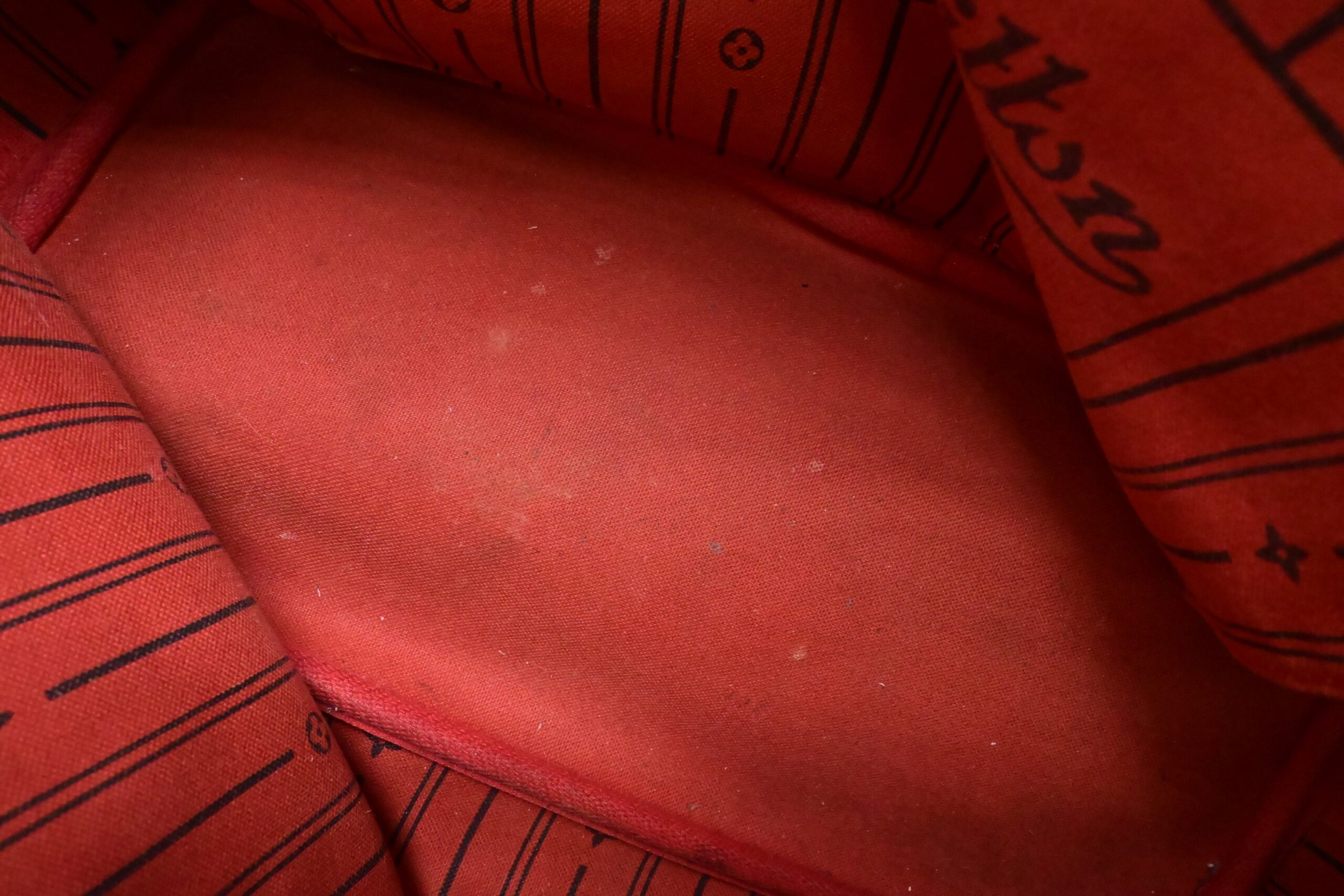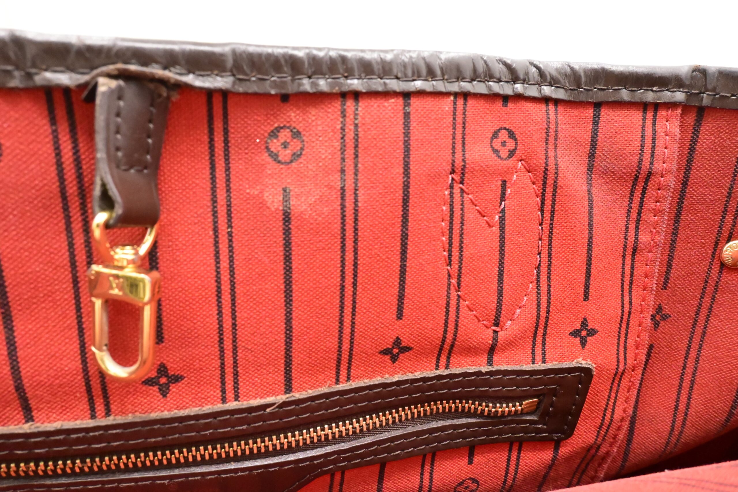 – Other: Red lining with a few marks, wear on zipper pocket lining