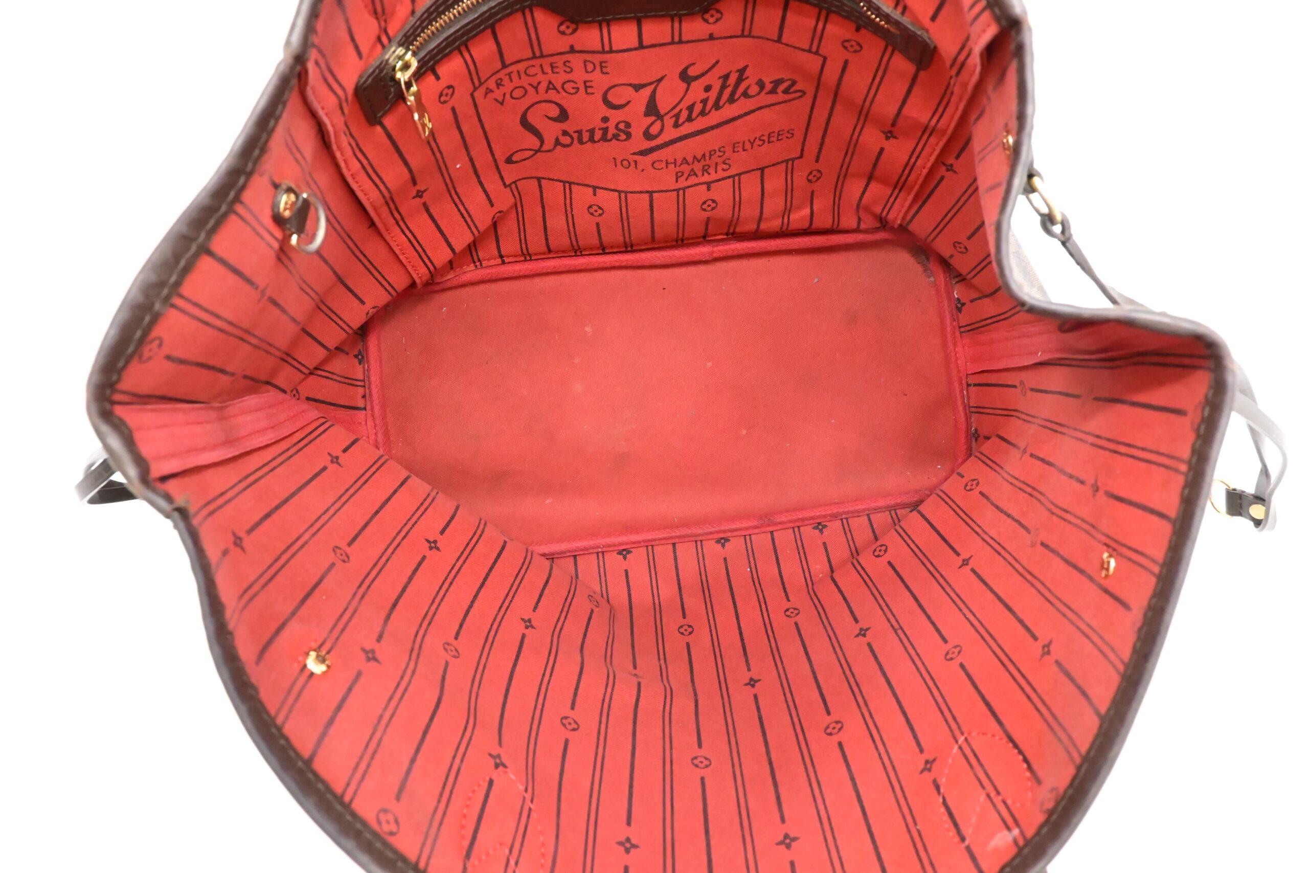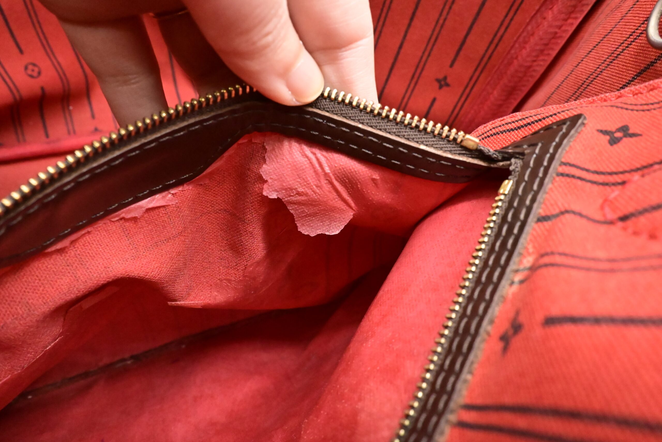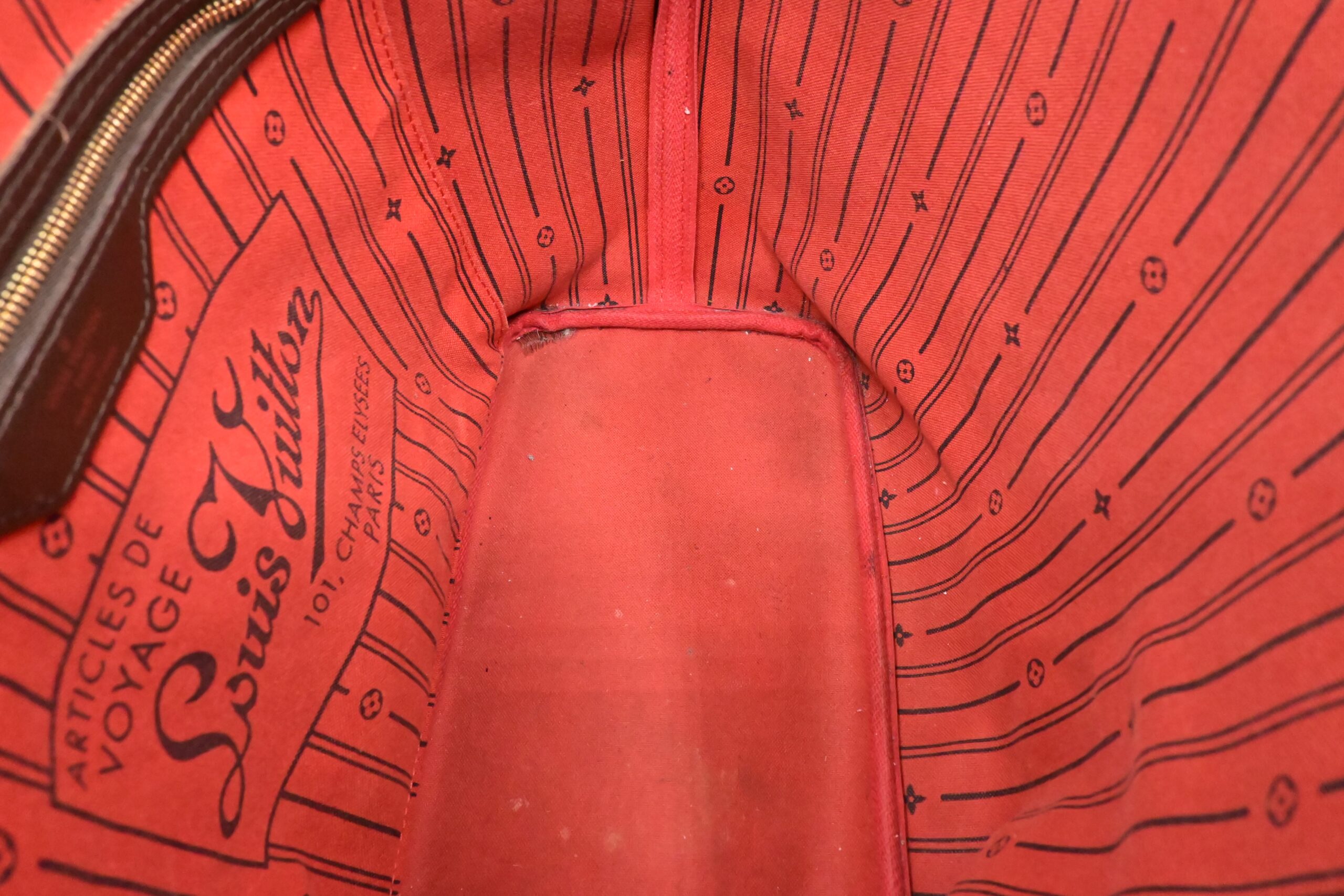 – Other: Red lining with a few marks, wear on zipper pocket lining