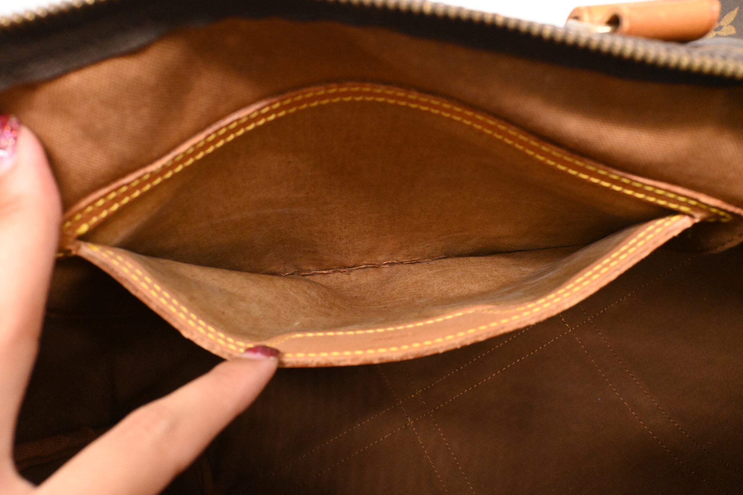 – Handles/Strap: Very good, bright even pattina with some lines of dryness