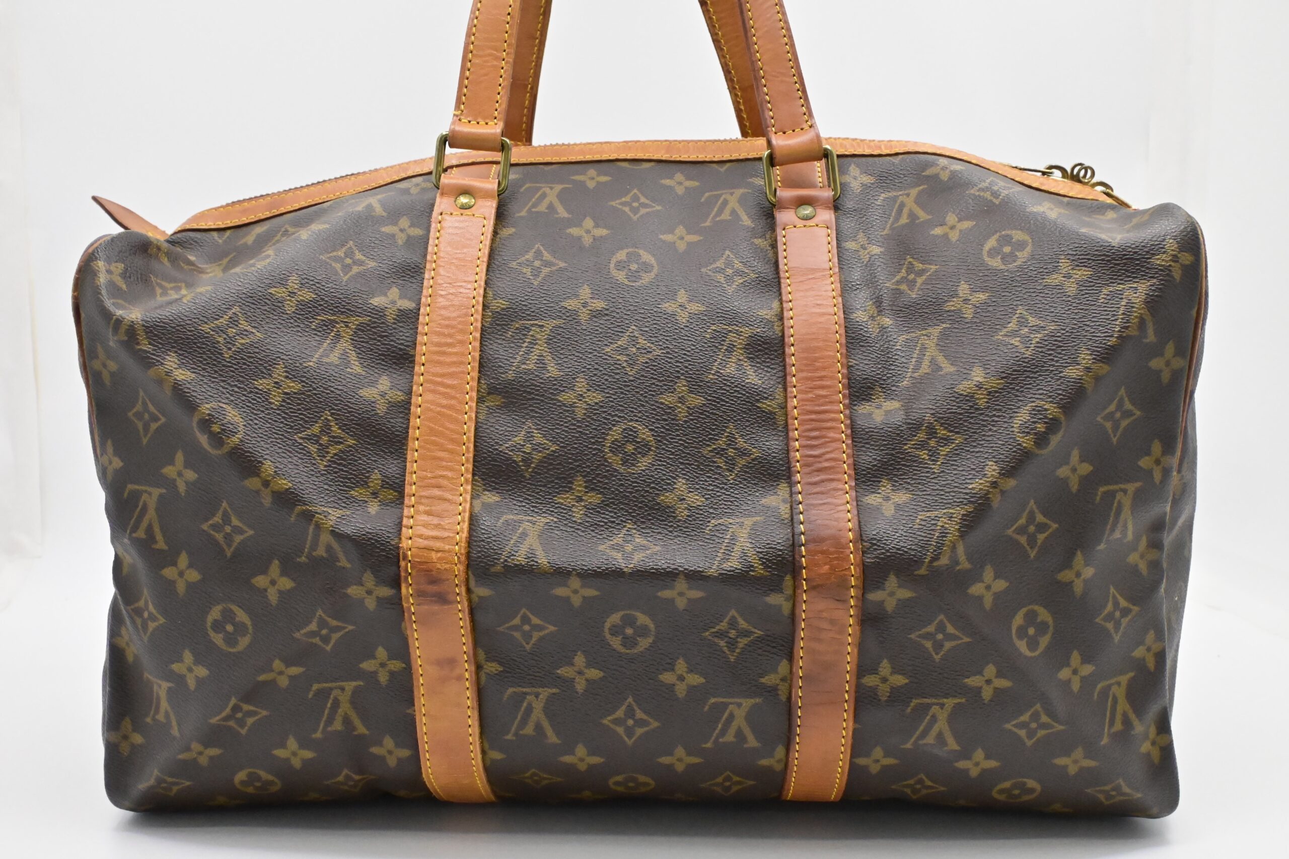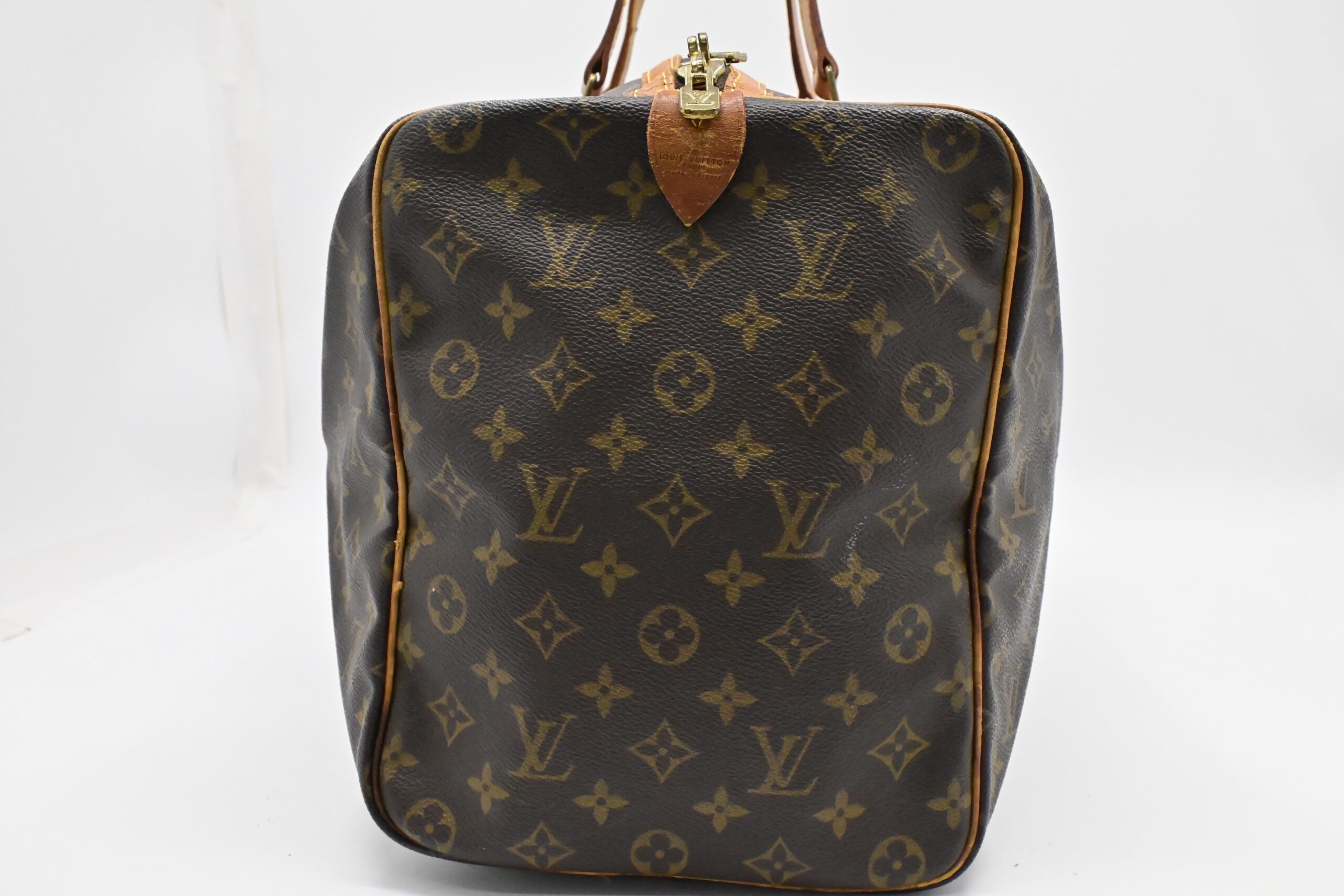 – Leather parts/Vachetta: Very good. Some water marks and folding lines
