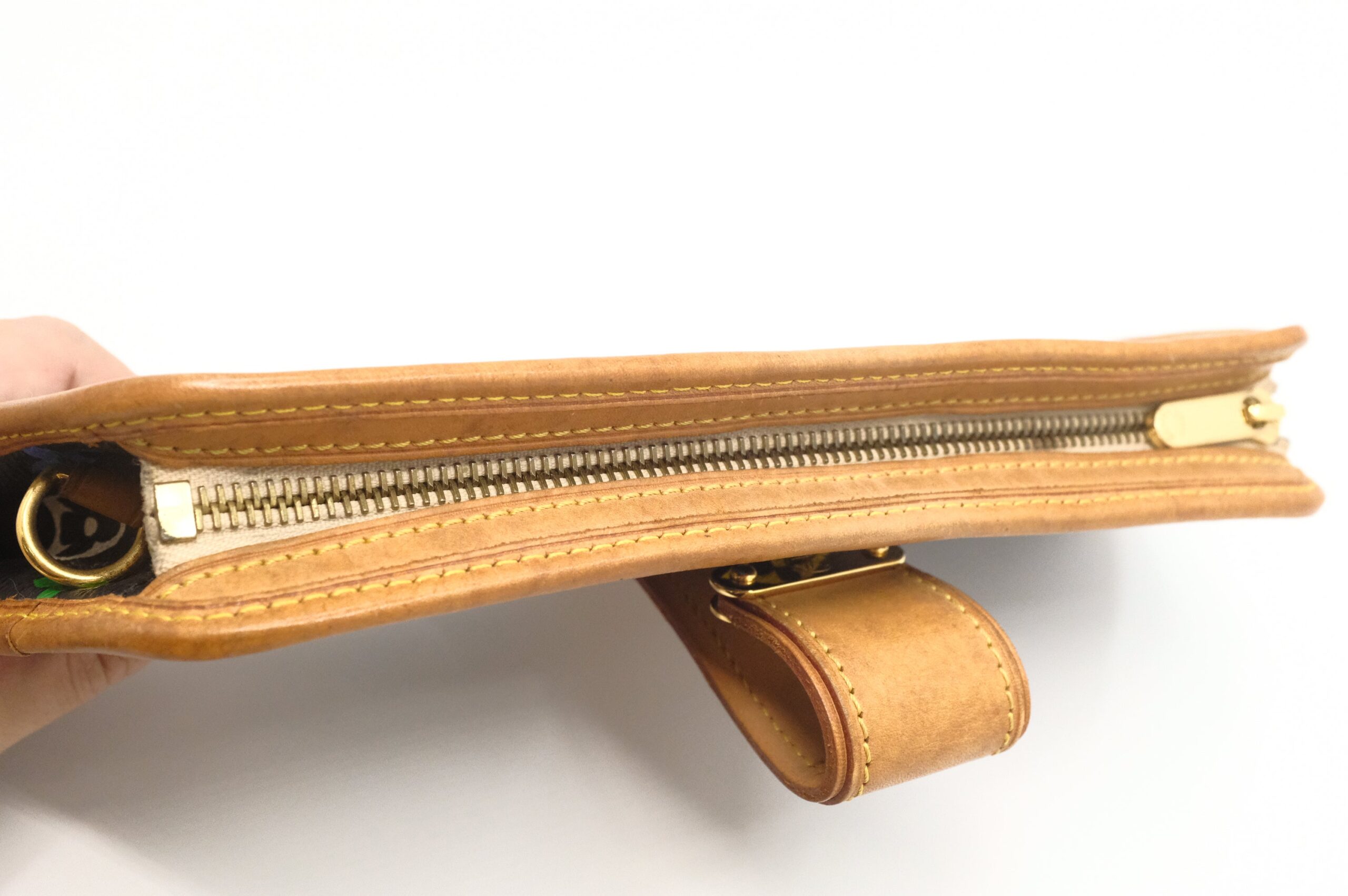 – Hardware: Shiny gold tone, latch works well, smooth zipper